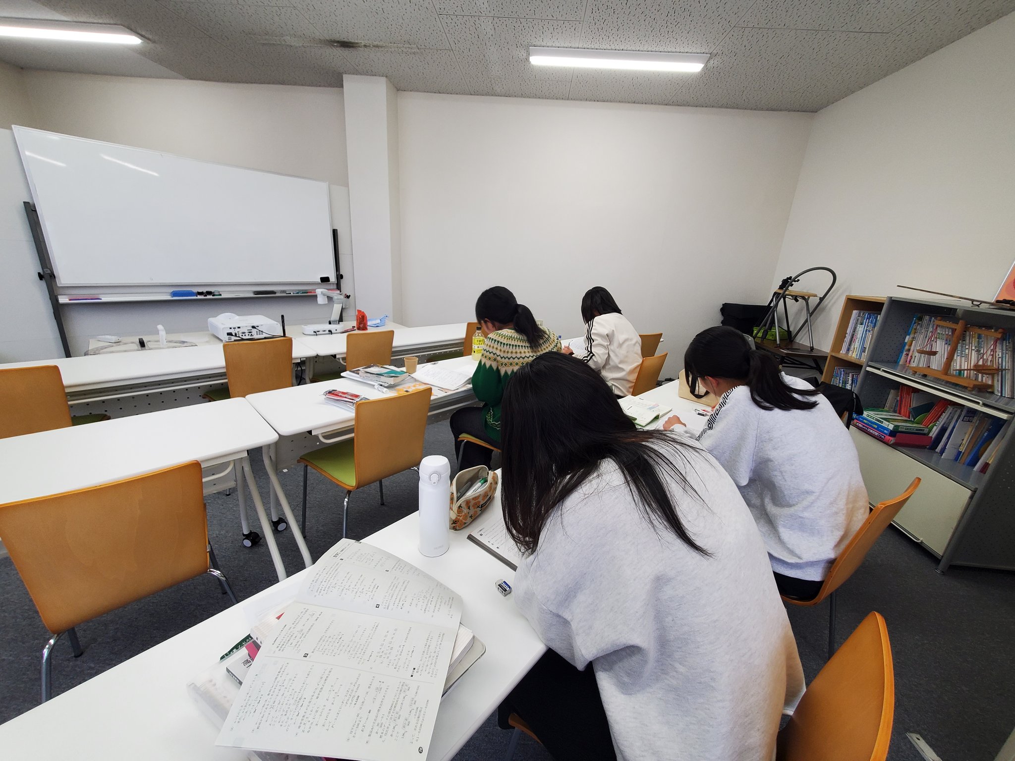 自習スペースを使って勉強ができます。「家にいると集中してできないから塾で勉強したい!」そんな声をよく聞くようになり、自習スペースを拡大しました